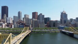 Our team has gathered beautiful drone footage around the North Shore district and the including PNC Park. These flights capture skyline views, riverfront bridges, and the well-known sports district along the rivers. Companies often use these shots at the start of a corporate marketing video to establish location and give viewers a sense of the Pittsburgh business environment.